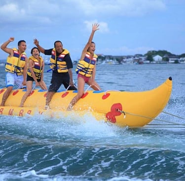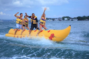 Banana boat rides are a popular water sport in Batam, offering groups an exhilarating experience as they're towed across the waves. Several reputable providers and resorts offer banana boat activities
